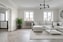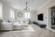Vardagsrummet med sin storslagna takrosett, tidstypiska skjutdörrar och stiligt vinylgolv bjuder in till umgänge med vänner och familj, här får man plats med en större soffgrupp och övrig möblemang.