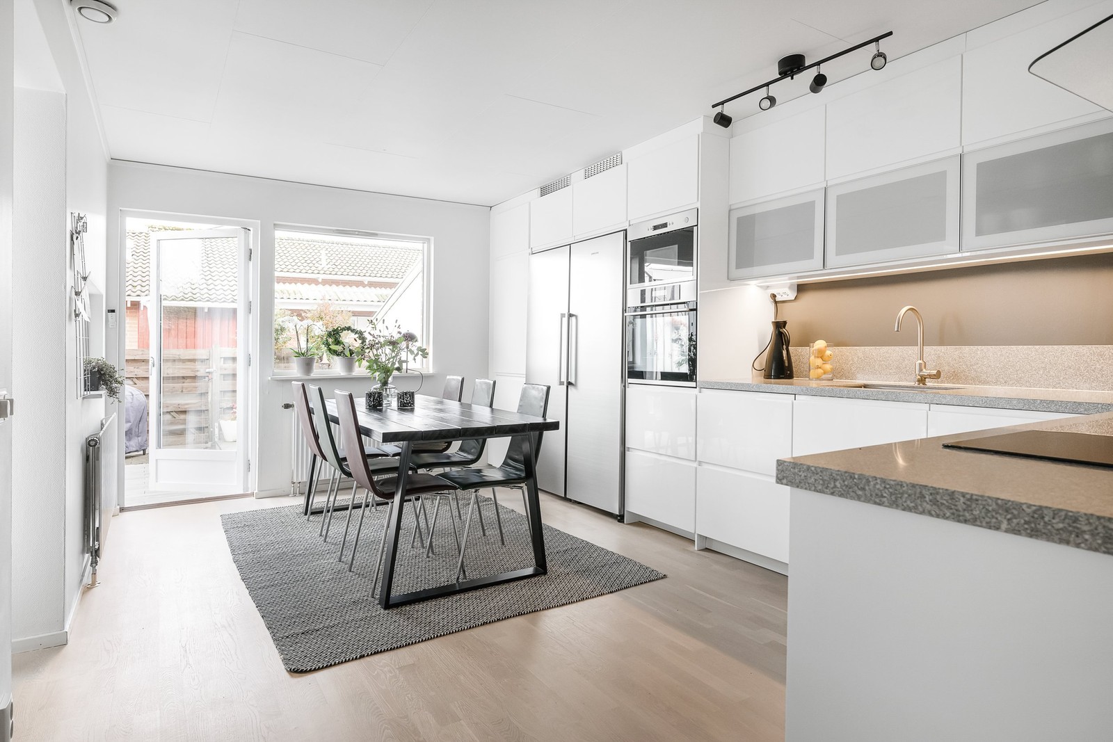 Välkommen till ett hemtrevligt boende i två plan, beläget i ett lugnt, bilfritt och barnvänligt område. Här bor ni i en trivsam miljö där genomtänkt planering och harmoniska färgval skapar en varm och inbjudande känsla. På entréplanet möts ni av bostadens sociala hjärta – ljusa och öppna ytor som binder samman vardagsrum, matplats och kök på ett naturligt sätt. Här finns gott om plats för umgänge och familjeliv. Ett fräscht badrum och en praktisk tvättstuga gör vardagen både smidig och bekväm.