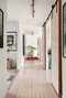 Rummet har häftiga specialsnickrade dubbelskjutdörrar med skenor och smide gjort av den lokala smeden. Äldre behandlat furugolv. Stort fönster mot uteplatsen.
