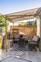 Den givna platsen under soliga dagar är det insynsskyddade härliga trädäcket med ouppvärmd pool i söderläge, på husets baksida. Husets framsida omges av en stenmur från 2019. Där finns också en nylagd uteplats.