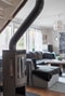 På övervåningen finns ett vardagsrum med ett karakteristiskt snedtak med fönster mot himlen och fyra sovrum som alla också har lika charmiga tak. På entréplanet finns ett helkaklat badrum med dusch och på den övre våningen finns ett badrum.