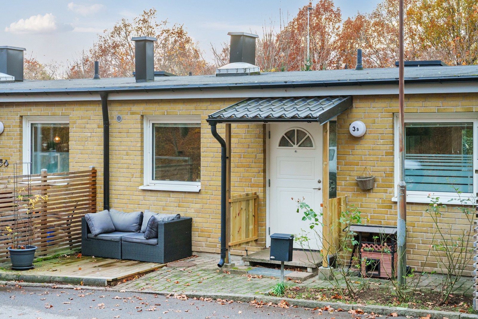 Bostaden har en genomtänkt planlösning där varje kvadratmeter nyttjas effektivt. Det ljusa vardagsrummet är lättmöblerat och bjuder på utgång till den trivsamma uteplatsen på trädgårdssidan – en perfekt plats för avkoppling eller sociala stunder i grönskan.