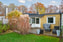 Här skapar parkettgolv och nytt målade väggar i vitt (2025) en ljus och luftig känsla. Från vardagsrummet nås den soliga terrassen i västerläge – en plats att njuta av från tidig vår till sen höst.