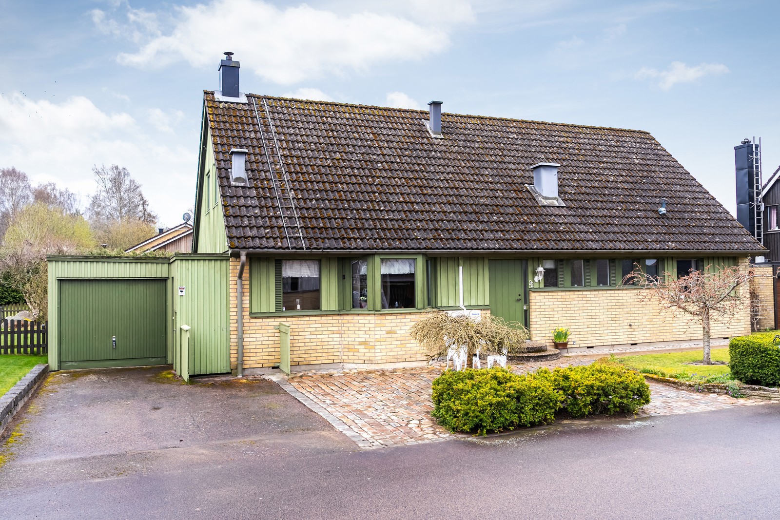 Familjevilla i soligt söderläge – uterum, garage och braskamin.