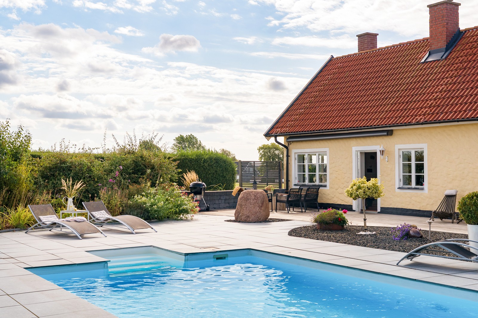 Utanför väntar en trädgård som är som gjord för långa sommarkvällar. Det generösa poolområdet blir snabbt en favoritplats för både stora och små, en oas där du kan koppla av, leka eller bjuda in till grillfest. Här finns också ett charmigt stall med två boxar, perfekt för dig med hästdrömmar, samt en lada som erbjuder mängder av extra yta för förvaring, verkstad eller kreativa projekt. I den bortre delen av boningshuset finns ytterligare utrymme, kanske ett hobbyrum, ateljé eller varför inte ett hemmagym? Här är det bara fantasin som sätter gränser.