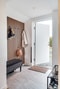 När du öppnar dörren möts du av ett hem som andas lugn och harmoni. Den ljusa hallen välkomnar med klinkergolv, gott om förvaring och en vacker spegelvägg som reflekterar ljuset från ingången. Härifrån når du direkt husets hjärta, den öppna planlösningen mellan vardagsrum, matplats och kök.