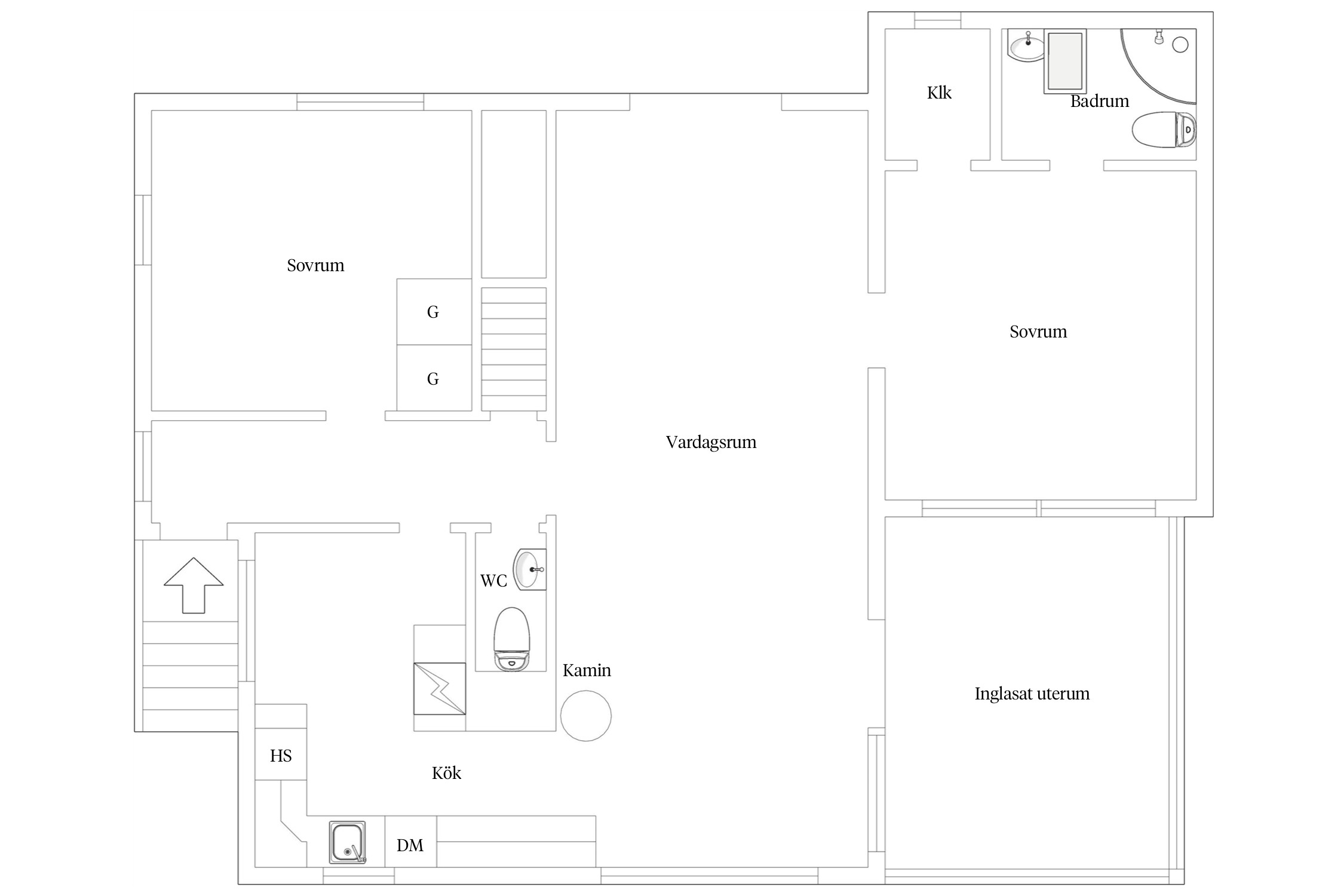 I anslutning till vardagsrummet ligger ett inglasat uterum, perfekt som extrarum vår, sommar och höst. Även härifrån finns utgång till trädgården via ett andra trädäck.