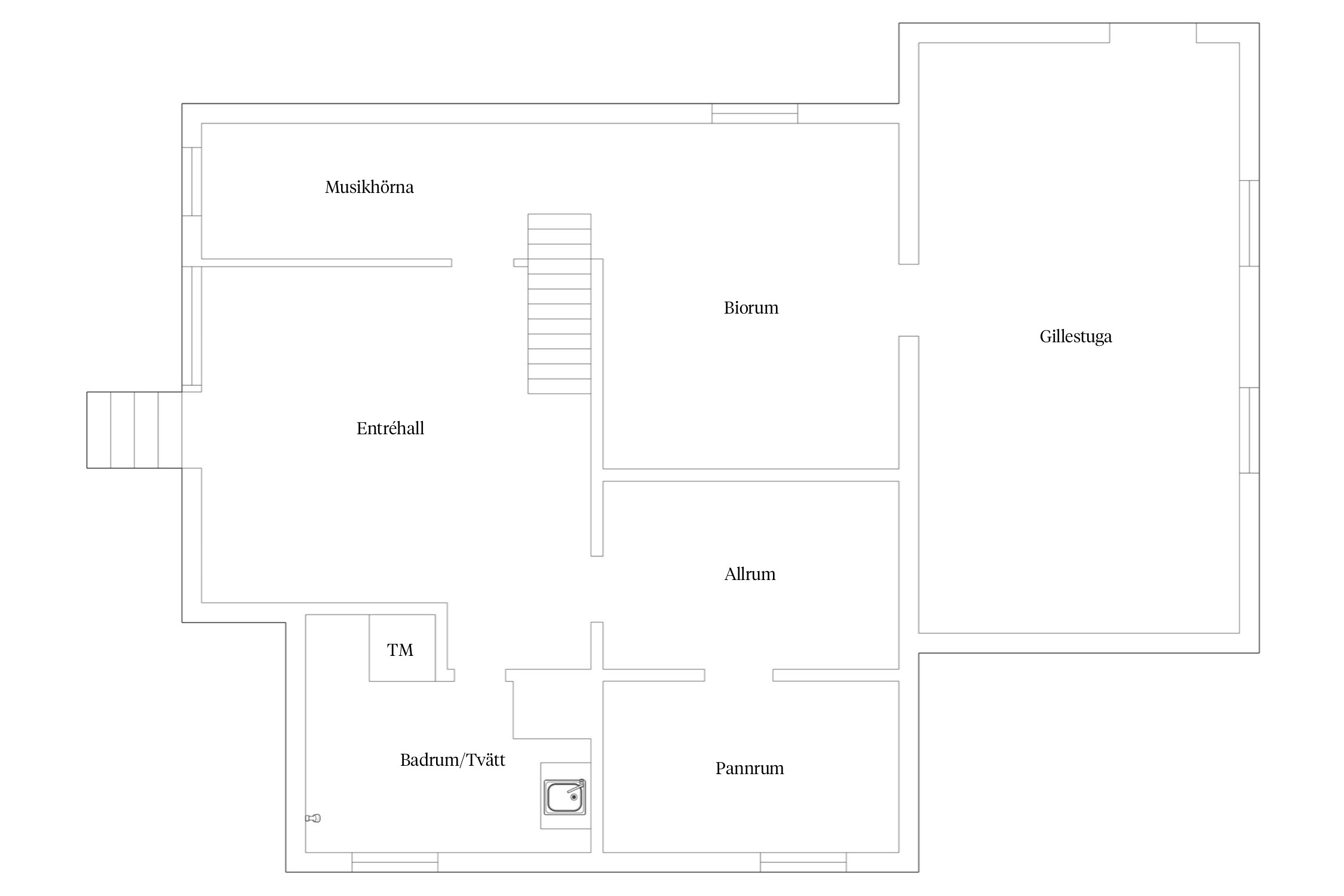 Via trappa från hallen når du det inredda källarplanet med flera flexibla ytor. Här finns ytterligare ett badrum med dusch, tvättstuga med tvättmaskin samt flera rum som lämpar sig väl som sovrum, arbetsrum, biorum eller tonårsdel med egen ingång.