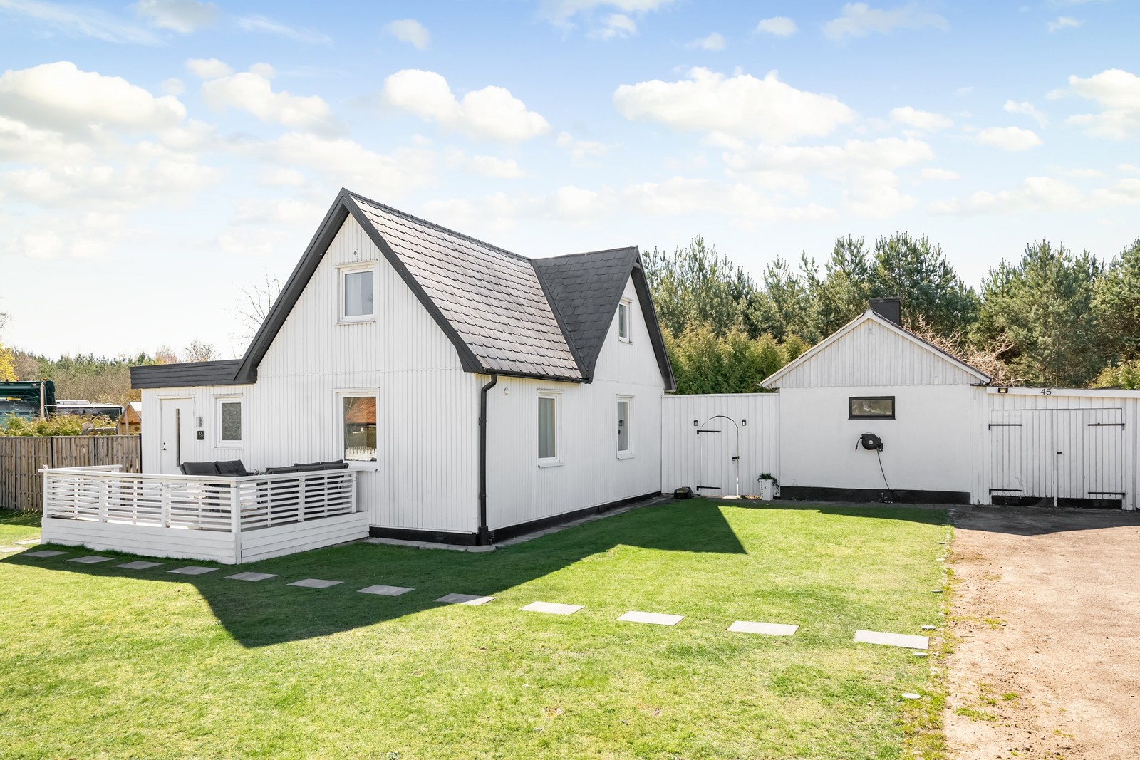 Ett hemtrevligt boende med ljusa sociala ytor, flera sovrum, uteplats under tak och gott om plats för fordon, fritidsintressen och framtidsplaner.