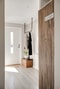 Via huvudentrén kliver man in i en välkomnande hall med goda avhängningsmöjligheter. Här finns plats för ytterkläder, skor och vardagens tillhörigheter, vilket ger ett ordnat och funktionellt första intryck. Bostaden präglas invändigt av ett ljust och behagligt uttryck, där väggar, golv och materialval samspelar på ett harmoniskt sätt. Direkt till höger från entrén nås badrum, praktiskt placerat för både familj och gäster.