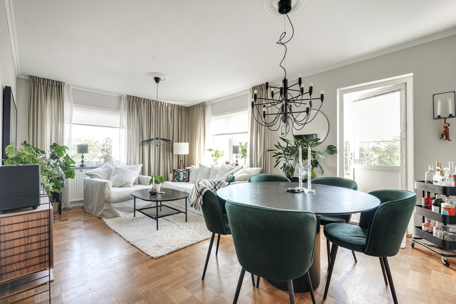 Hjärtligt välkomna till denna charmiga bostadsrätt, här erbjuds generösa ytor och en underbar utsikt från balkongen ut mot trädgården.