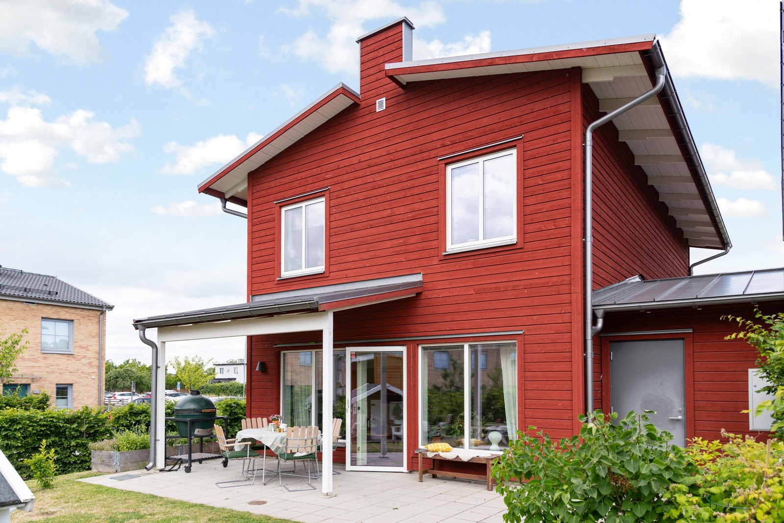 Här möts ni av ett hem där lugnet infinner sig redan vid ankomst. Huset ligger på en insynsskyddat hörntomt med trädgård som sträcker sig runt tre sidor av huset – ett unikt trädgårdsläge som skapar en sällsynt villakänsla i bostadsrättsform. Här erbjuds en utemiljö att verkligen trivas i, med plats för generös uteplats, lekstuga, planteringar och studsmatta – en trädgård att leva och växa i. Tomtens utformning ger både rymd, ljusinsläpp och en känsla av avskildhet som sällan går att hitta i liknande boenden. På framsidan finns dessutom en praktisk carport med plats för två bilar samt ett förråd – idealiskt för cyklar, redskap och extra förvaring.