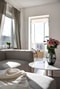 Hela lägenheten är inredd med påkostade materialval och fönsterbänkar i vacker sten.