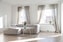 På golvet ligger ett vitpigmenterat parkettgolv som löper vidare genom hela bostaden och skapar en fin helhet.