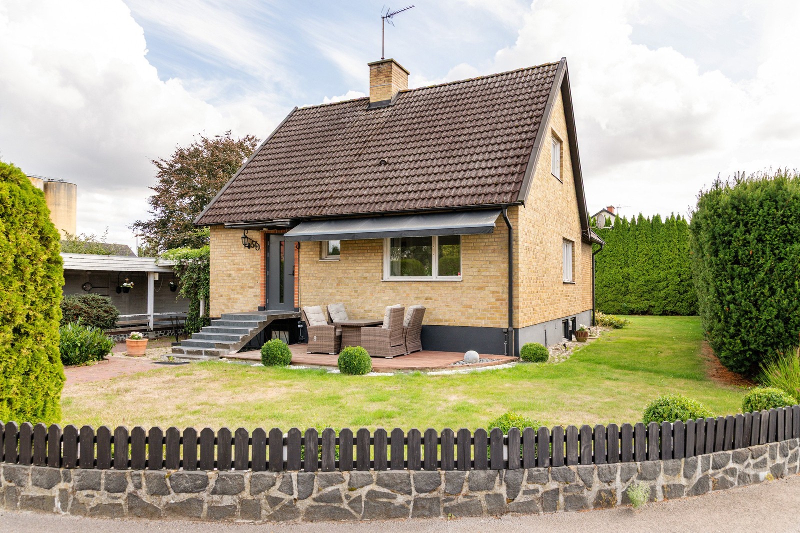Ljus tegelvilla med generösa ytor, härlig trädgård och praktiska lösningar – ett hem för både familjeliv och avkoppling.