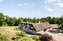 Utemiljön är skyddad och genomtänkt, med trädäck, plats för matgrupp och grill samt ett spabad. Trädgården sträcker sig i flera väderstreck och ramas in av en vacker stenmur mot ängarna. På gårdsplanen har en äldre stallbyggnad fått nytt liv som uterum, där det finns plats för folk och fest.