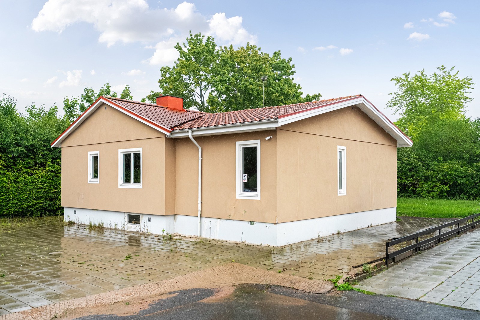 Trädgården bjuder på en härlig gräsyta, insynsskyddade uteplatser och gott om plats för både lek och odling. Tack vare den stora uppfarten finns plats för flera bilar, vilket gör vardagen smidigare för hela familjen.