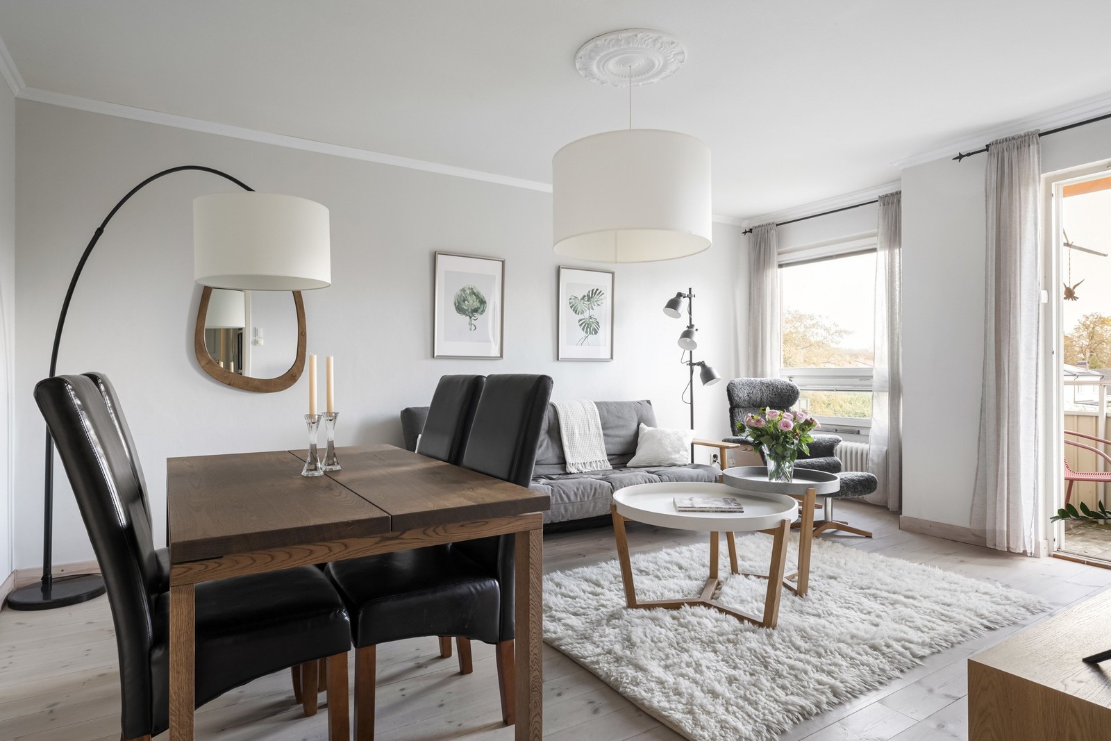 Lägenheten kännetecknas av ett härligt ljusinsläpp som skapar en varm och inbjudande atmosfär. Vardagsrummet är stort och rymligt, perfekt för både avkoppling och socialt umgänge. Här flödar ljuset in genom de stora fönstren, vilket skapar en ljus och inbjudande atmosfär. Den öppna känslan gör det enkelt att möblera efter egen stil, och du har gott om plats för både soffgrupp och en mysig läshörna. Med sina eleganta detaljer och det härliga ljusinsläppet är detta rum en verklig oas för både vardagsliv och samvaro. Från vardagsrummet nås balkongen, här kan du njuta av utsikten över området från balkongen, perfekt för morgonkaffet eller avkoppling efter en lång dag.