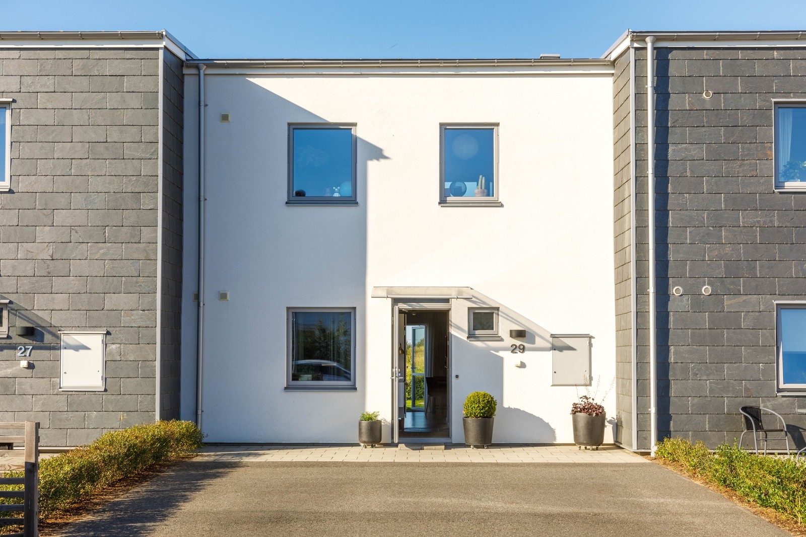 Stilrent radhus i trivsamt kvarter med utsikt över åkrar och hagar.