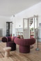 Salen in mot trädgårdssidan är något mindre än den mot torget, men delar samma fördelar. Stora ljusinsläpp, ljusa toner och volym i mängder. Det finns såväl plats för större matsalsmöblemang som för soffgrupperingar. Den stora gjutjärnstrappan leder upp till vinden och även här finns en stor braskamin.