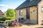 Uteplats med utgång från vardagsrummet. Möjlighet att skapa fler uteplatser i olika väderstreck.