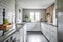 Ett vitt modernt kök som bjuder på god förvaring och bra med avlastningsytor. Inrett med: kyl/frys, inbyggd ugn, spishäll, köksfläkt, inbyggd mikro, diskho samt integrerad diskmaskin.