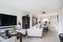 Vardagsrummet bjuder på god plats till både matsalsmöblemang och soffgrupp. Tack vare de stora fönsterpartier och altandörren i glas som vetter mot trädgården så har bostaden ett mycket fint ljusinsläpp och under sommarhalvåret suddas gränsen mellan vardagsrum och trädäck ut och skapar en gemensam stor härlig social yta.