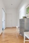 Ni välkomnas in genom en ljus och öppen hall med plats för att hänga av sig ytterkläderna. På golvet ligger det klinker som övergår till parkett.