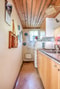 Planlösningen består av rymligt vardagsrum med separat ingång men som kan öppnas upp mot köket på andra sidan väggen, köket, sovrum och separat toalettutrymme med vask, dusch och förbränningstoalett. Charmiga äldre spröjsade fönster.