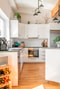 Ett vitt stilrent kök med tillhörande bänkskivor i grått laminat med vitt liggande kakel ovanför. Utrustningen består av: spishäll, ugn, kyl/frys i fullhöjd, spisfläkt och diskmaskin. Köket är avskilt med en köksö som ger extra förvaring samt sittplats. Den öppna planlösningen ger gott om utrymme till en större matplats om så önskas.