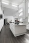 Ett kök som går i en vit kulör, inrett med: inbyggd ugn, spishäll, köksfläkt, diskmaskin, diskho, kyl/frys och vinkyl. Det bjuds på goda förvaringsmöjligheter och stora avlastningsytor med hjälp av köksön.