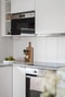 Köket har en stilren vit inredning från Marbodal med bänkskivor i laminat samt vitt kakel ovanför. Utrustningen i köket består av spishäll, ugn, inbyggd mikro, kyl/frys, diskmaskin samt mekanisk spisfläkt, samtliga vitvaror från Cylinda. I vardagsrummet/köket finns också en matplats för upp till 6 middagsgäster.
