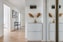 Ljust parkettgolv kombinerat med släta vitmålade väggar. Två garderober.