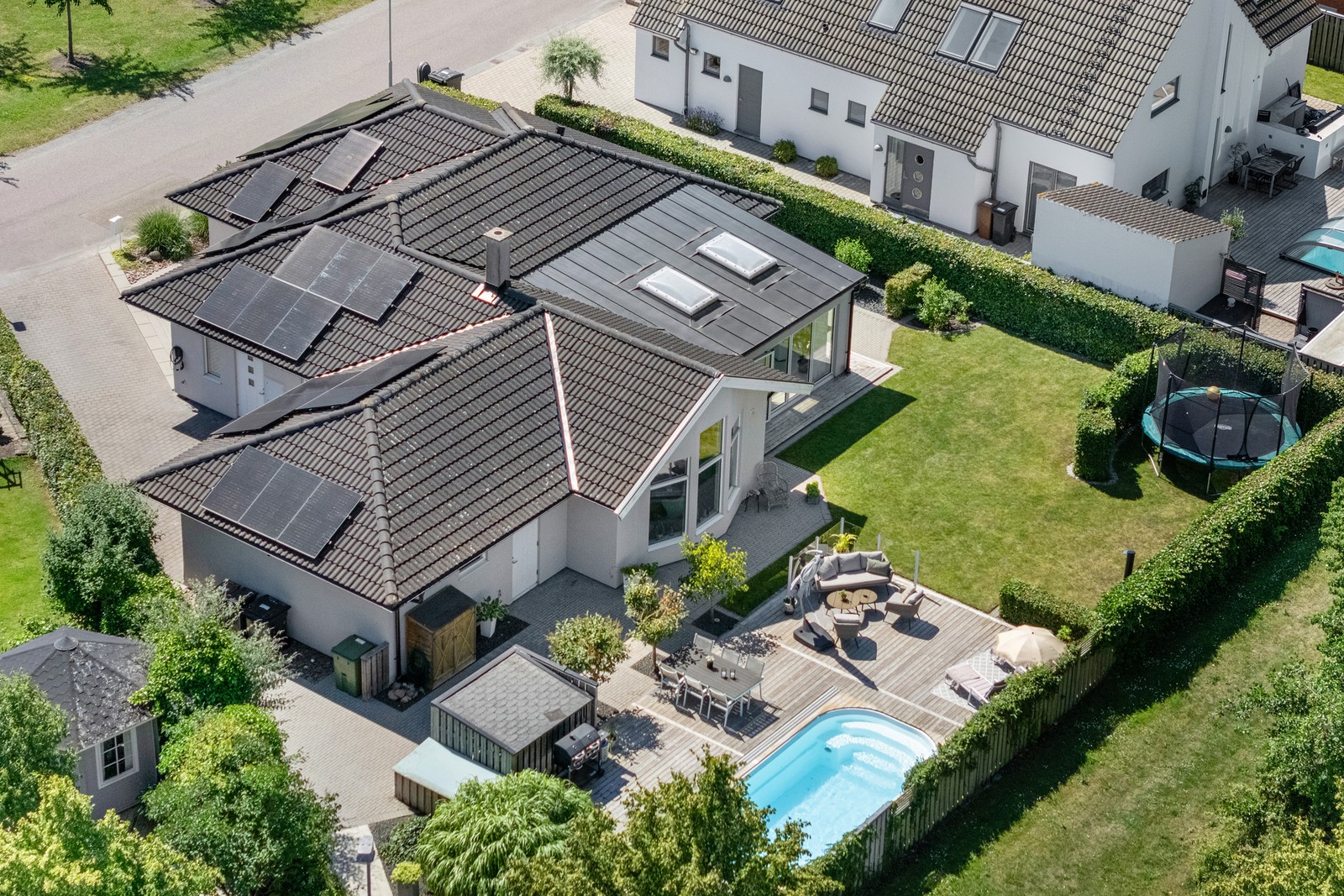På en attraktiv adress finner ni denna 1-plans villa på hörntomt med pool, garage och solceller
