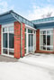 Välkommen till en stenlagd entré med eget garage intill huset.
