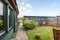 En mysig insynsskyddad atriumgård gömmer sig bakom en dörr i planket. Här finns också ett rymligt förråd och två stenlagda uteplaterser. Skärmtak ovanför ytterdörren.