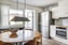 I hela lägenheten ligger en snygg grå klinker på golvet.