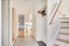Entré/Hall med en snygg ytterdörr i oljad ek, klinkergolv och plats för ytterkläder. Den vackra trappan med stort fönster ligger direkt till höger i entrén.