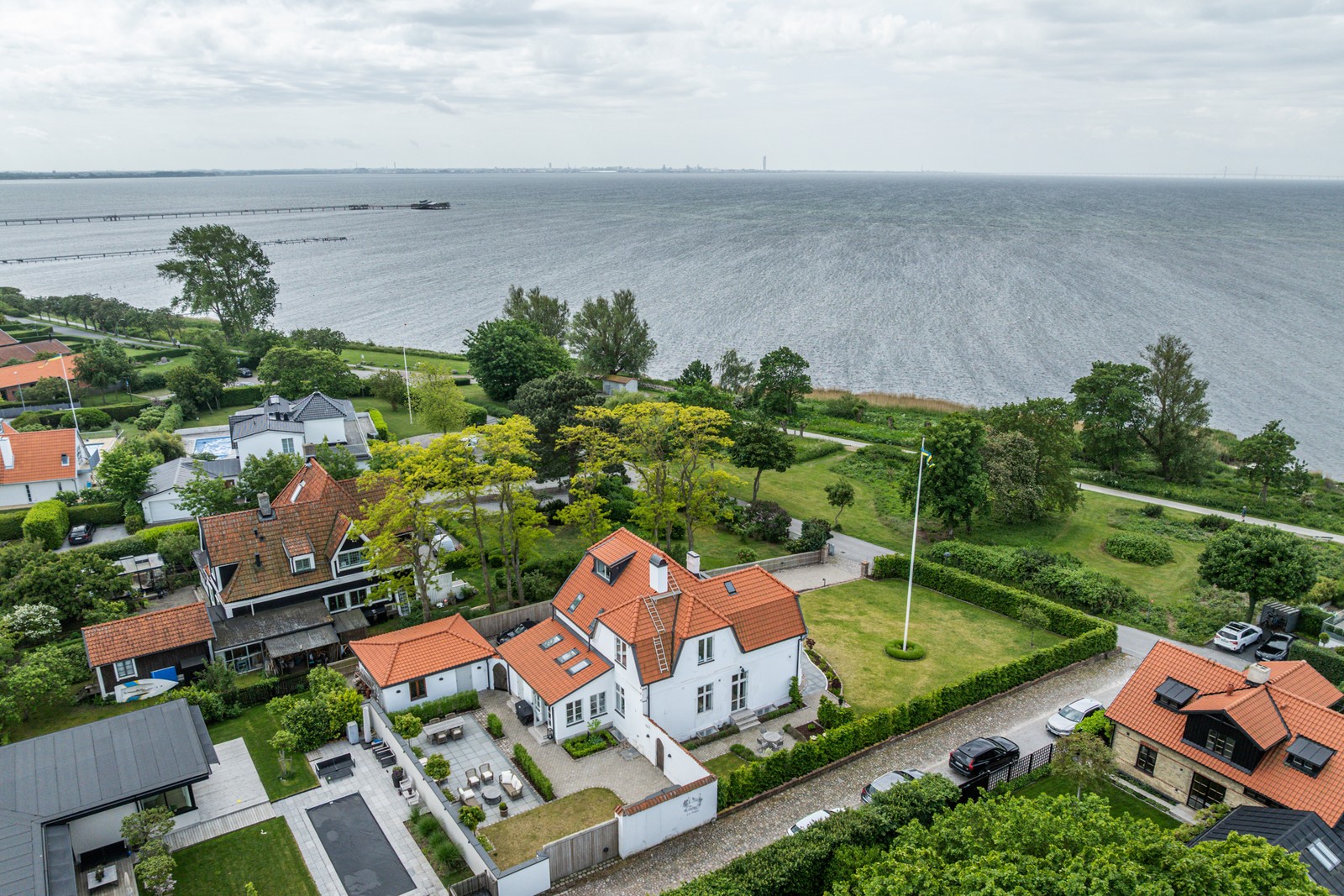 I de äldre delarna av Bjärred vittnar bebyggelsen om ortens historia som fashionabel badort. Just här längs Norra Villavägen reser sig de allra äldsta husen uppe på strandvallen. De uppfördes runt sekelskiftet av Lunds välbeställda borgare som på helgerna bytte om till de tidstypiskt randiga baddräkterna. På den fridfulla gatans nummer 6 leder den breda, stensatta uppfarten kantad av stora gräsytor upp till en klassisk patriciervilla från 1896. Under det brutna tegeltaket med kupor har den vitputsade fasaden stora och stiltrogna fönsterpartier. Ett halvmåneformat burspråk i kolonialstil breddar panoramat ut över sundet. Med start 2019 har den vackra bostaden genomgått en lika omfattande som exklusiv renovering. Fokus har legat på att bevara och lyfta fram den tidlösa interiören och de ikoniska detaljerna. En sober och mycket väl sammanhållen designlinje drar genom villan med genomgående fiskbensparketter, ljusa marmorgolv och platsbyggd inredning med stiliserade speglar. Detaljnivån är mycket hög; från vackra takrosetter ner till detaljskurna listverk och höga spegeldörrar. Interiören kännetecknas av ansenlig takhöjd, ljusa rumsvolymer och en ständigt närvarande utsikt över sundet. På villans baksida är trädgården skyddad av traditionella murar. Här finns stensättningar, planteringar, grönska och stenlagda terrasser som fångar solen under dagen. Härute finns även ett spabad under bar himmel. Villan har upp till fem sovrum, två badrum, entréhall, sällskapsytor, matsal, exklusivt kök, lounge, groventré, walk-in-closet, allrum på mellanplanet, ljust ateljérum på vindsplanet, stort källarplan med spa-avdelning, gästrum, tvättstuga, kombinerad festlokal och biorum med barkök. Den breda, stensatta uppfarten rymmer många bilar framför garaget. Det höga och privata utsiktsläget tillhör en av kuststräckans i särklass mest eftertraktade.