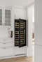 En bit längre in till höger har vi det generösa och vackra köket som renoverades 2021. Inredning från HTH med bänkskivor i granitkomposit, maskiner från Siemens med undantag för vinkylen som är mQuvèè. Fiskbensmönstrad ekparkett, vitmålade väggar samt infällda spotlights i både tak och fönstersmygar. I köket finns utgång till framsidan.