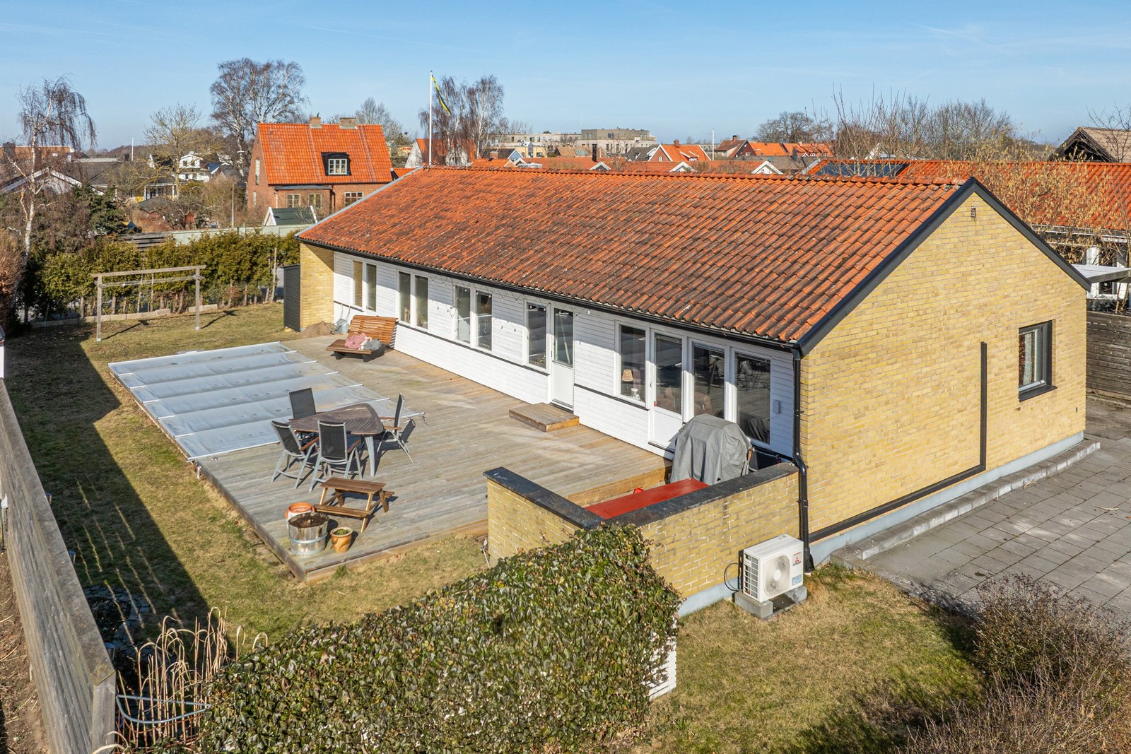 Välskött och friliggande 1-plans poolvilla belägen på insynsfri västertomt om 666 m² i Gamla Bjärred.