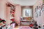 Till höger om köket ligger en sovrumsavdelning med två stora sovrum varav det ena med garderobsvägg och det andra med klädkammare och med utgång till trädgården. Ekparkett i ena sovrummet och plastmatta i det andra. Här finns även ett badrum och en tvättstuga.