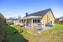 Insynsskyddad hörntomt med häckar, gräsmatta och fruktträd. Gott om plats för lek och umgänge i trädgården.