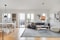 Vardagsrummet erbjuder generösa ytor och flexibel möblering. Vi får plats med soffgrupp, bokhyllor och tv-möbel. Fönstren vetter mot öster och mot söder. Tack vare den öppna planlösningen kan vi "låna" utrymme från vardagsrummet om man skulle vilja duka upp till långbord vid festligare tillfällen.