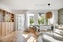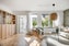 Från hallen och rakt fram når man den öppna och ljusa planlösningen där vardagsrum och matplats flyter fint ihop med köket. Tack vare planlösningen inbjuder det till flexibel möblering. Man får plats med soffgrupp, tv-möbel och bokhyllor. Vid matplatsen kan man sitta minst åtta personer och vill man ha större sällskap går det också bra då rummen flyter in i varandra. Från vardagsrummet har man stora fönsterpartier mot söder och utgång till uteplats med trädäck och el-styrd markis. Allting omsluts av en härlig och uppvuxen avenbokshäck.