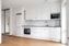Kök. Golv: parkett. Köksfabrikat: Vedum. Köksluckor: Vita. Utrustning: induktionshäll (Siemens, 2015), fläkt (Franke, 2015), varmluftsugn (Siemens 2015), kombinerad kyl/frys (Siemens, 2015), integrerad diskmaskin (Siemens, 2015) och mikrovågsugn (Siemens, 2015).
