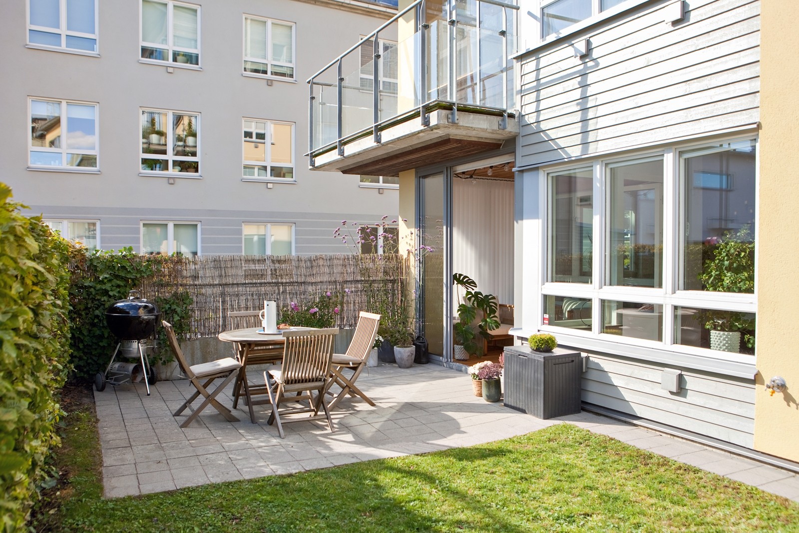 Ett stenkast från strand och hav ligger denna unika marklägenhet i fritt söderläge med uterum.