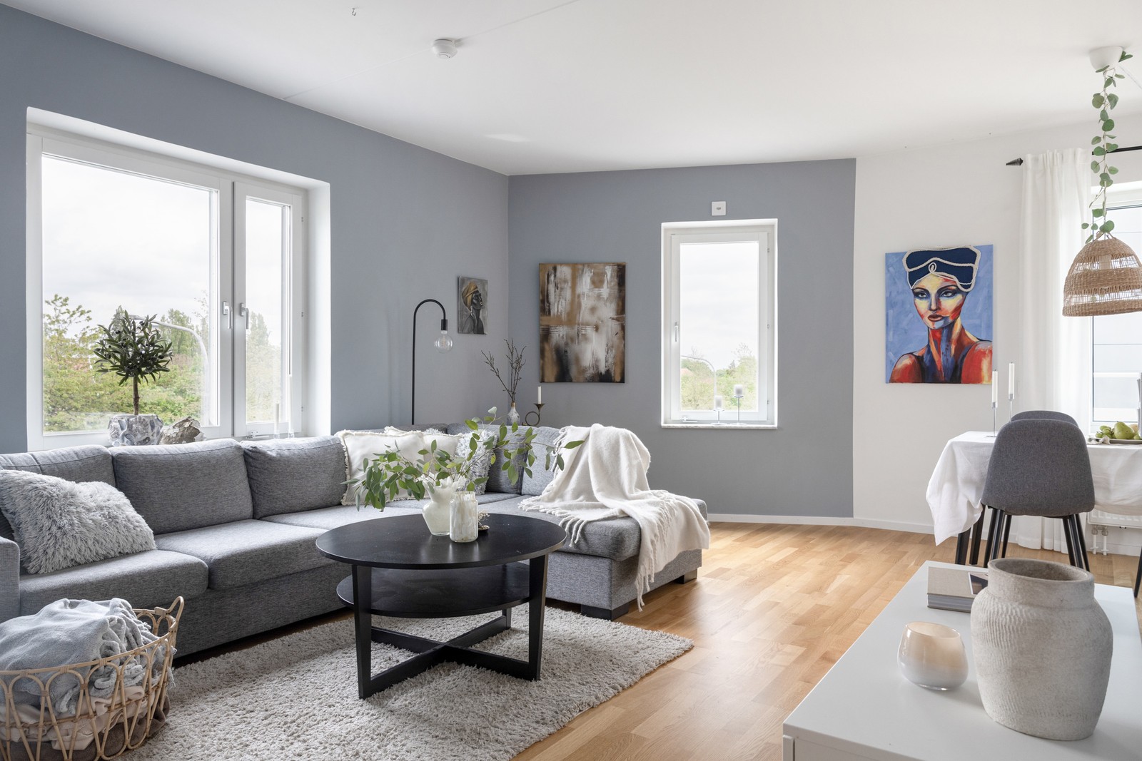 Ljus och trivsam gaveltrea med öppen planlösning och solig söderbalkong!