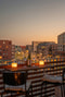 Balkong i sydöstligt läge med platsbyggd bänk och förvaring.