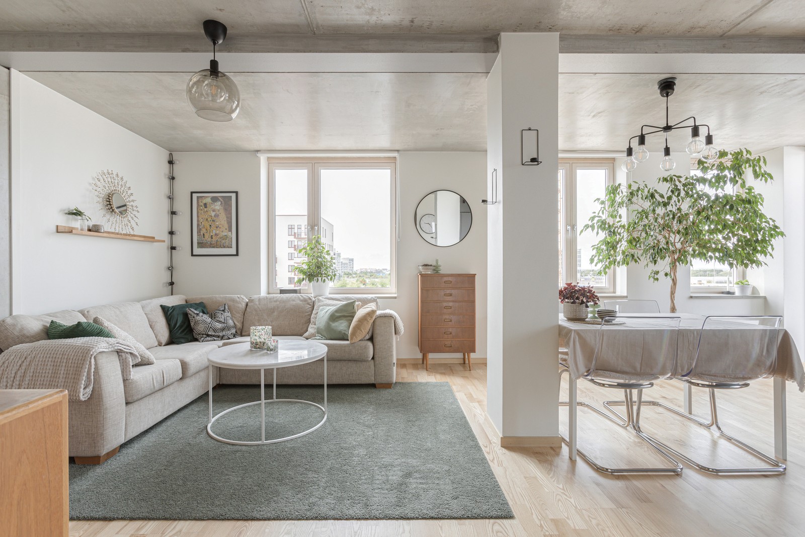 Högt upp med fri utsikt – modern 4:a med stor balkong och två badrum. Gemensam pool och spabad!